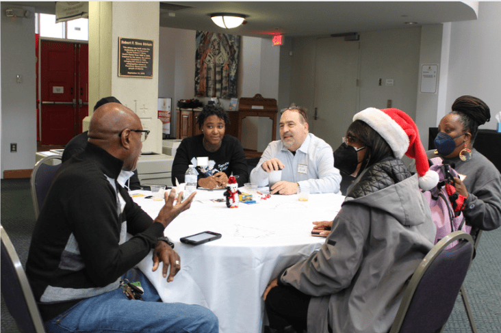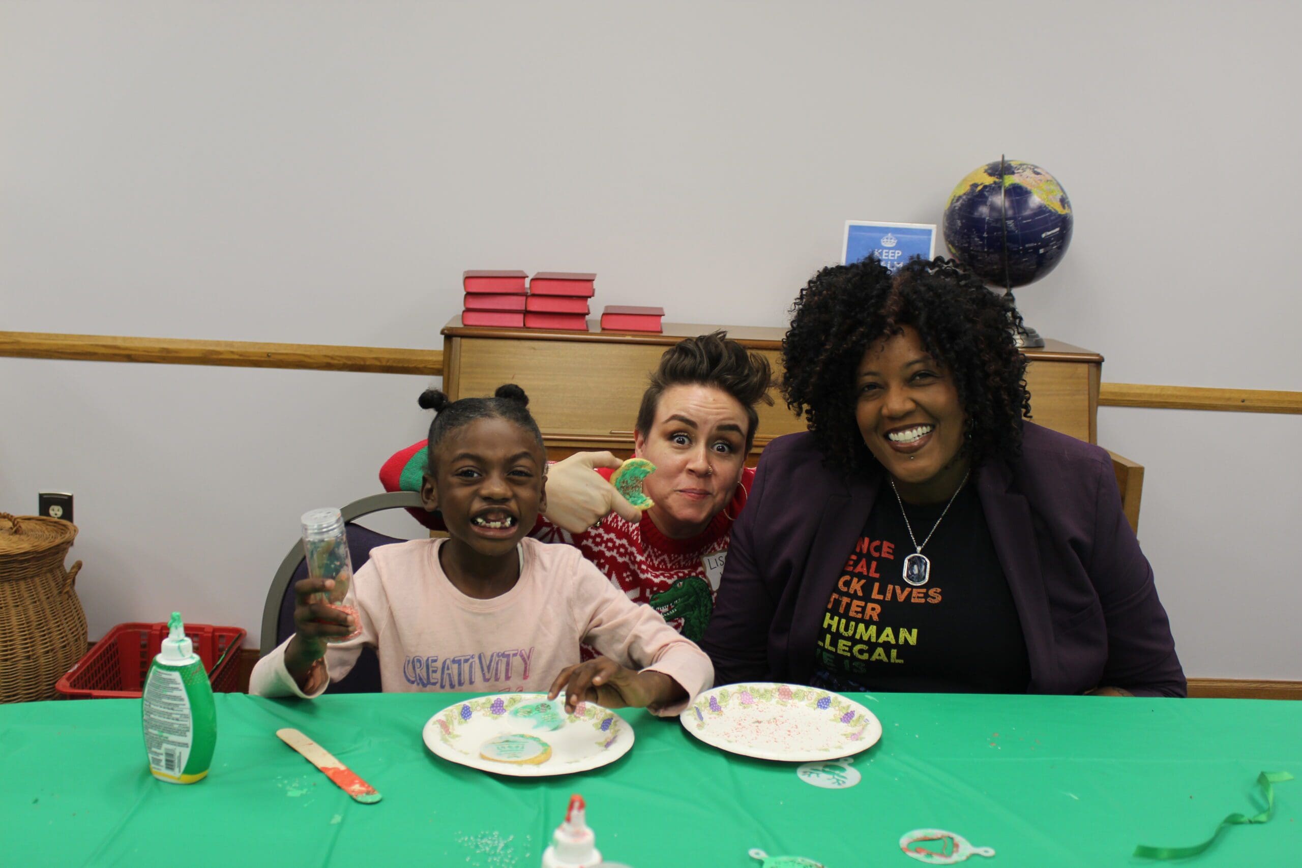 GJP’s Holiday Party was back in-person this year! As part of our holistic intervention, GJP is committed to staying connected to our clients, in part through twice-yearly parties. In 2020 and 2021, we had to adjust our Holiday Party to a “drive-thru” event that would be safer for our clients, their families, and staff during the pandemic. This year, we were able to join our clients again in person complete with a holiday meal, crafts and activities, a visit from Santa, and a wrapped gift for each child to take home.